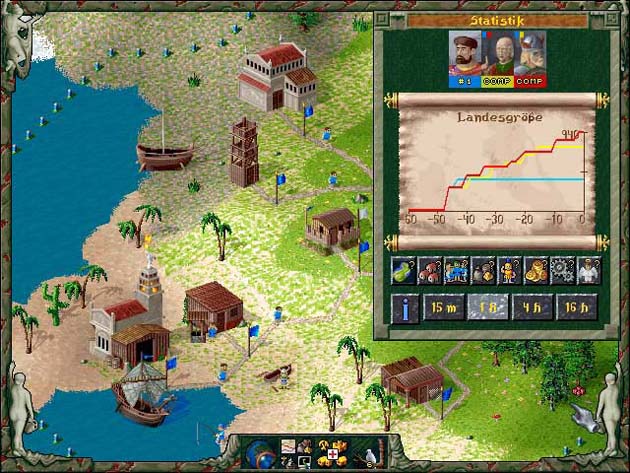 neues Land aneignen können. Sehr hilfreich ist hierbei vor allem, daß benötigte Materialien automatisch von den Schiffen von