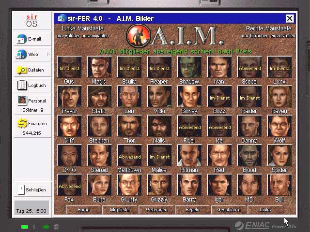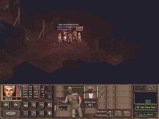 Eigentlich ist Sir Tech ja eher für epische Rollenspiele bekannt, doch nachdem jetzt seit etlichen Jahren kein richtiger Wizardry Teil mehr erschienen ist, kam das Taktik-Strategiespiel Jagged Alliance gerade recht. In diesem spielte man den Kopf einer Söldnertruppe, der die Aufgabe hatte, ein schlagkräftiges Team zusammenzustellen und mit diesen eine Insel aus den Händen von bösen Buben zu befreien. Gekämpft wurde dabei in einem rundenbasierenden Modus. Jeder unserer Söldner besaß eine ganze Reihe Eigenschaften wie Treffsicherheit oder Geschick, die dafür zuständig waren, wie weit dieser laufen konnte oder wie gut er auch auf weite Entfernungen trifft. Wurden alle Kämpfer gezogen, ist der PC dran, seine Einheiten zu bewegen und Aktionen durchzuführen. Hatte man ein Gebiet dann komplett gereinigt, galt es fortan als unseres und warf eine gewisse Menge Geld ab. Mit diesen konnte man sich wiederum neue und bessere Söldner kaufen.