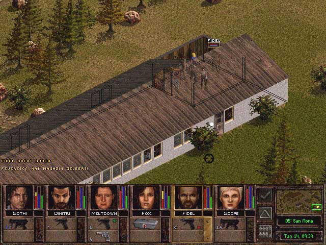Die wichtigste Regel bei Jagged Alliance 2 ist: "Bewege dich vorsichtig!". Jeder Schritt, jeder Schuß muß vorher genau bedacht sein, denn in Null-komm-nix schleicht sich ein gegnerischer Soldat hinter unseren Söldner und pustet ihn mit 2 gezielten Schüssen ins Jenseits. Aus diesem Grund haben die Spielfiguren ein großes Repertoire an Bewegungen: Schleichen, ducken, liegen, klettern - all das sollte ein moderner Söldner heutzutage können, um einen Inselkrieg zu gewinnen. Neben diesen normalen Bewegungsabläufen haben wir je nach Waffe unterschiedliche Schußmodi (Feuerstoß, gezielter Schuß), sowie die Möglichkeit, unser Teammitglied im Gefecht zu verbinden, Schlösser zu knacken oder Sprengladungen anzubringen. Die Effektivität dieser Tätigkeiten leitet sich direkt von der Höhe der Punkte ab, die der Söldner auf Skills wie Treffsicherheit, Geschick oder medizinische Erfahrung hat. Erfreulicherweise sind unsere Kämpen sehr lernwillig und verbessern ihre Fähigkeiten von Zeit zu Zeit.